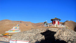 景点说明:卓尔山属于丹霞地貌,由红色砂岩、砾岩组成。藏语称为"宗穆玛釉玛",意为美丽的红润皇后。卓尔山景区项目建设地位于祁连县八宝镇,紧靠八宝河与藏区神山阿咪东索(牛心山)隔河相望。站在卓儿山顶视野极度开阔,四周没有任何遮拦,山对面是一山尽览四季景色的牛心山,左右两侧分别是拉洞峡和白杨沟风景区,背面是连绵起伏的祁连山,山脚下滔滔八宝河像一条白色的哈达环绕在县城周边。处处美景,宛如仙境,令人心旷神怡。传说中卓尔山与祁连的镇山之山--阿咪东索(牛心山)是一对情深意重的情侣,默默守候在八宝河两岸,共同护佑着祁连的山山水水。 卓尔山属于丹霞地貌,由红色砂岩、砾岩组成。藏语称为"宗穆玛釉玛",意为美丽的红润皇后。卓尔山景区项目建设地位于祁连县八宝镇,紧靠八宝河与藏区神山阿咪东索(牛心山)隔河相望。站在卓儿山顶视野极度开阔,四周没有任何遮拦,山对面是一山尽览四季景色的牛心山,左右两侧分别是拉洞峡和白杨沟风景区,背面是连绵起伏的祁连山,山脚下滔滔八宝河像一条白色的哈达环绕在县城周边……处处美景,宛如仙境,令人心旷神怡。传说中卓尔山与祁连的镇山之山--阿咪东索(牛心山)是一对情深意重的情侣,默默守候在八宝河两岸,共同护佑着祁连的山山水水。根据规划内容,项目区由山脚下的"卓尔山森林公园"和山顶的"卓尔山观景台"两部分组成,2007年主要建设卓尔山观景台项目,建设内容包括仿古烽火台、民族团结祥和塔、碉堡、停车场、游客服务中心、三个观景台以及步行道路等。