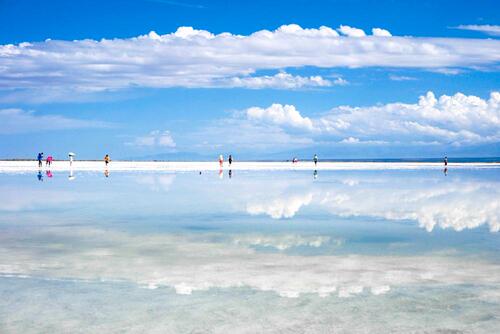 景点说明:茶卡盐湖:别称茶卡或达布逊淖尔,是位于青海省海西蒙古族藏族自治州乌兰县茶卡镇的天然结晶盐湖,是柴达木盆地四大盐湖之一。“茶卡”是藏语,意即盐池,也就是青海的盐;“达布逊淖尔”是蒙古语,也是盐湖之意。 茶卡盐湖被旅行者们称为中国“天空之镜”,被国家旅游地理杂志评为“人一生要去的55个地方”之一。盐湖水域宽广,银波粼粼。天空白云悠悠,远处苍山峥嵘,蓝天白云、雪山映入湖中,如诗如画。四周牧草如茵,羊群似珍珠洒落。漫步湖上,犹如进入盐的世界。 景区里有众多的盐雕可以观赏,还可以乘坐景区小火车,到盐湖的深处观光. 可以湖面上观看和拍摄自己的倒影,如果足够幸运,白天可以看到在这些湖面上形成的海市蜃楼. 想要拍照漂亮就穿上颜色鲜艳的衣服. ps: 1.携带湿纸巾进入,下湖后会有盐晶粘脚,方便擦拭 2.涂抹好防晒并做好防晒措施进入,盐湖紫外线较强 3.墨镜,遮阳帽也一并带入,由于盐湖盐晶为白色,反光作用强,会给眼睛带来强光 4.景区内可租鞋套,下湖时避开湖里的黑色溶洞,以免落入刮伤腿 5.浙江籍游客凭身份证免收门票